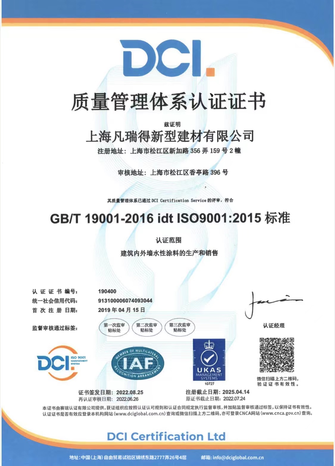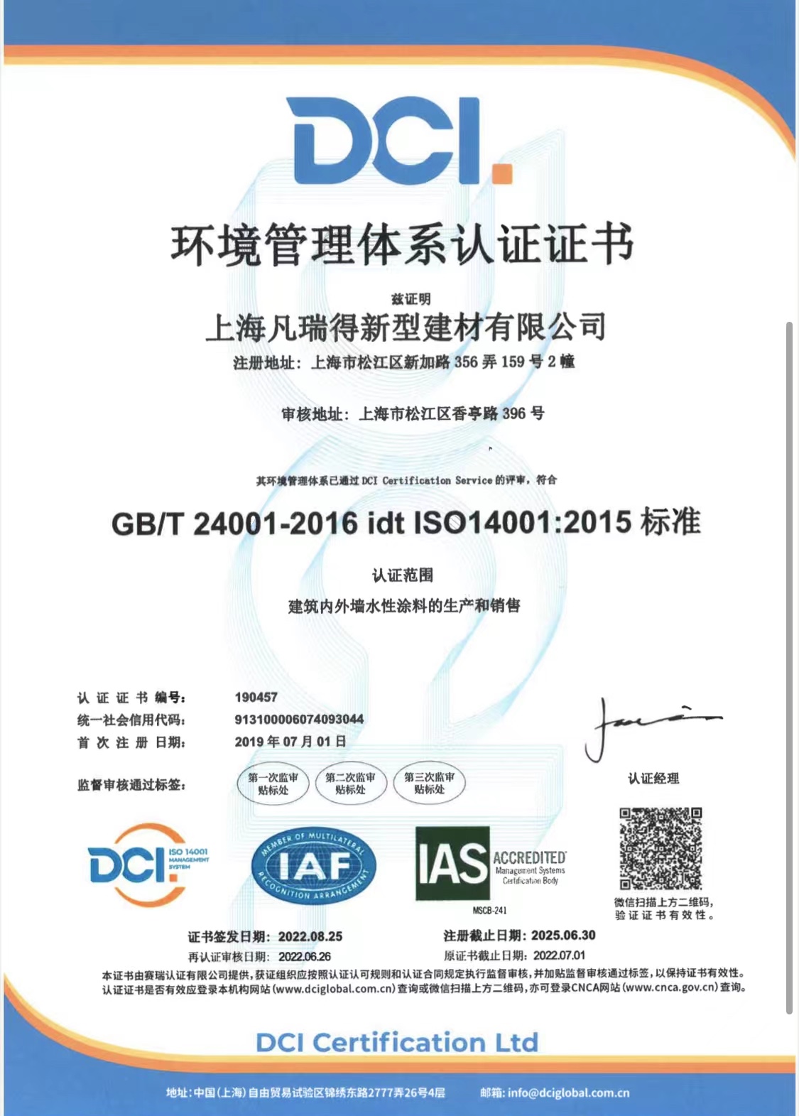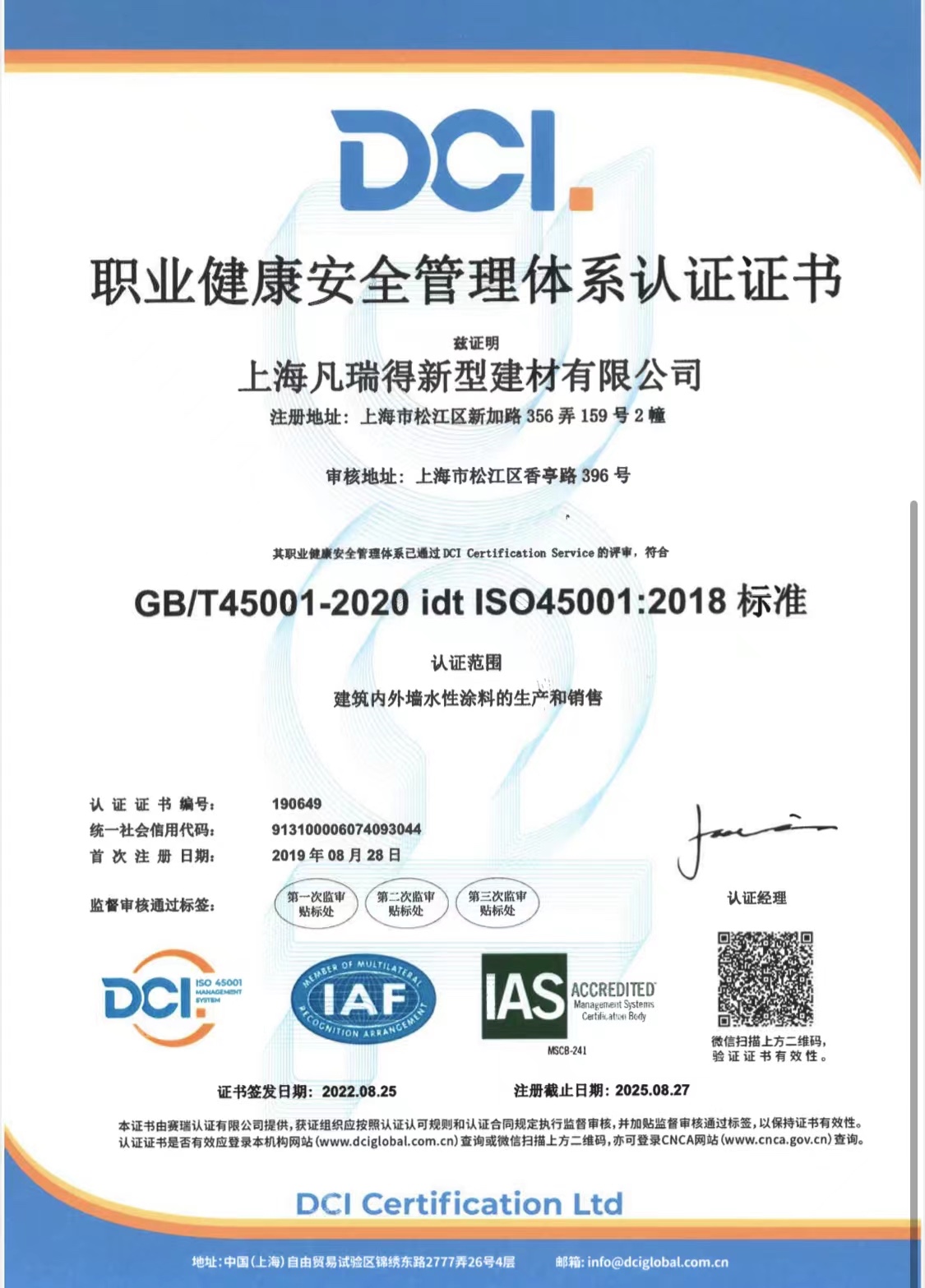 凡瑞得荣获2022年DCI体系认证证书