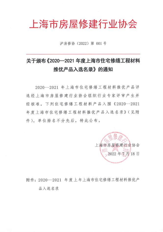 凡瑞得产品入选2021协会推优名录!